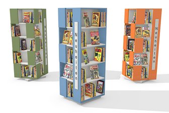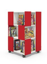 Ob mit festem Sockel, Drehsockel oder Rollen, mit 3, 4 oder 5 Etagen, bietet der Bücherturm T-TRIS vielfältige Möglichkeiten zur wirkungsvollen Präsentation und Aufbewahrung von Büchern, Taschenbüchern, DVDs und Mangas.